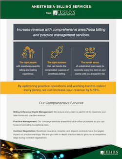 Unlike other anesthesia practice management companies, Fusion Anesthesia bundles services into a complete package so that you can get comprehensive answers with a single call.