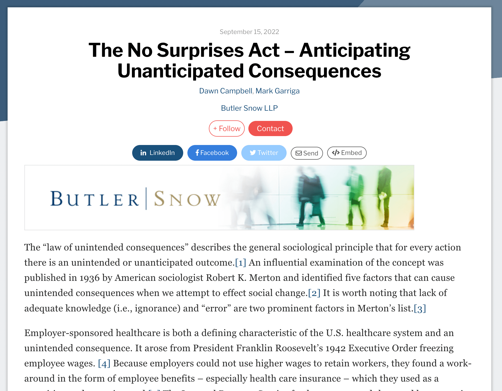 The No Surprises Act – Anticipating Unanticipated Consequences