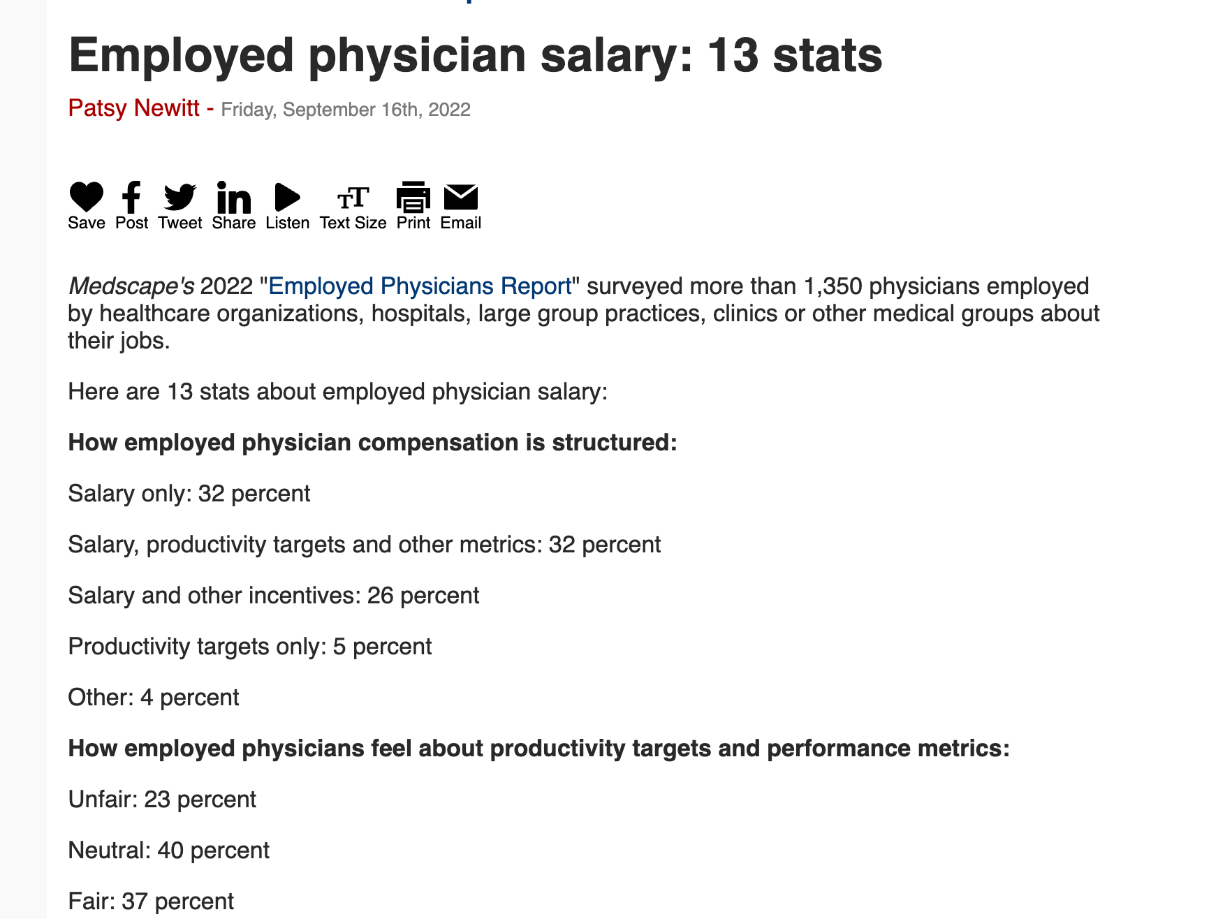 Employed Physician Salary: 13 Stats