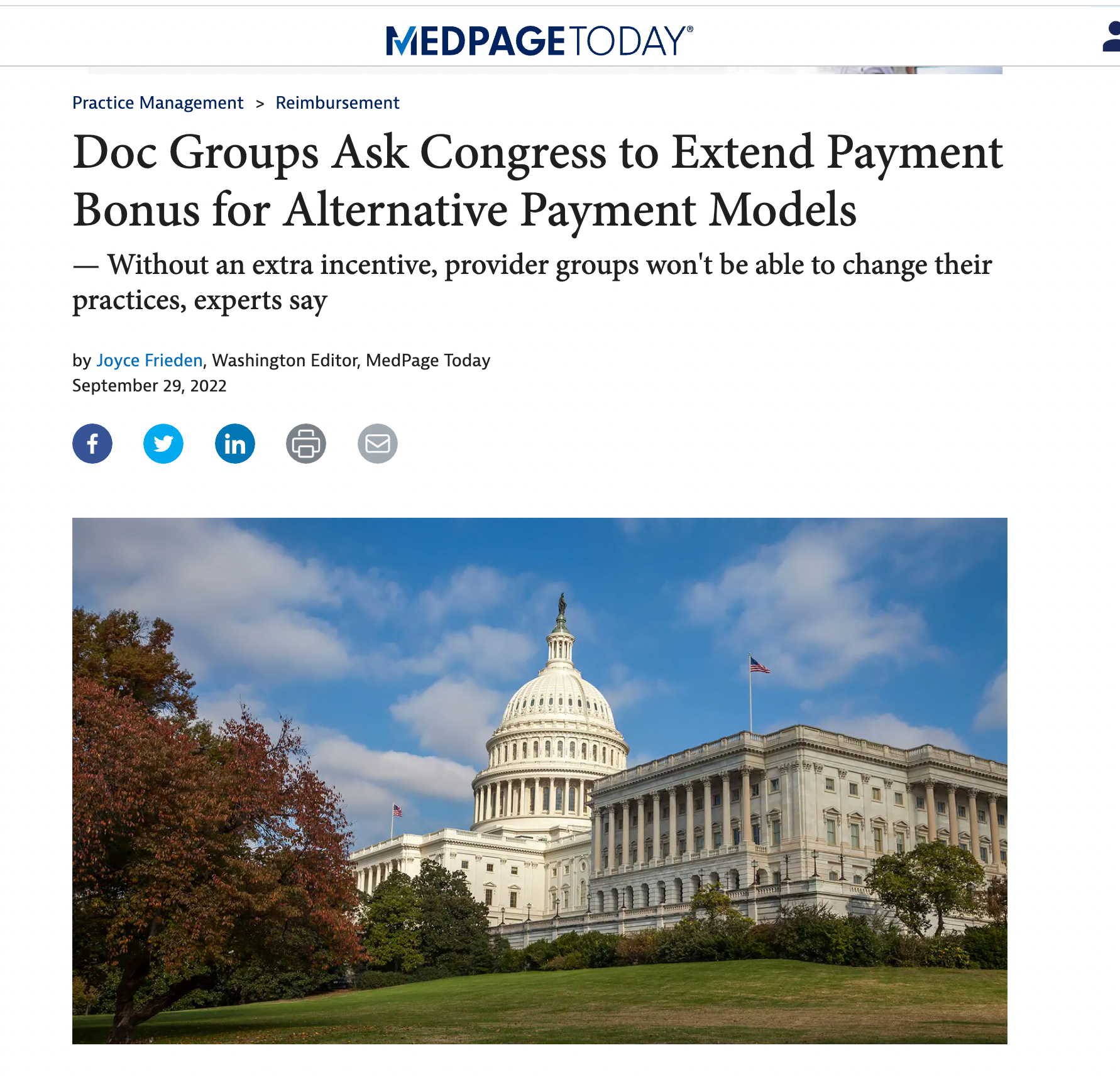 Doc Groups Ask Congress to Extend Payment Bonus for Alternative Payment Models